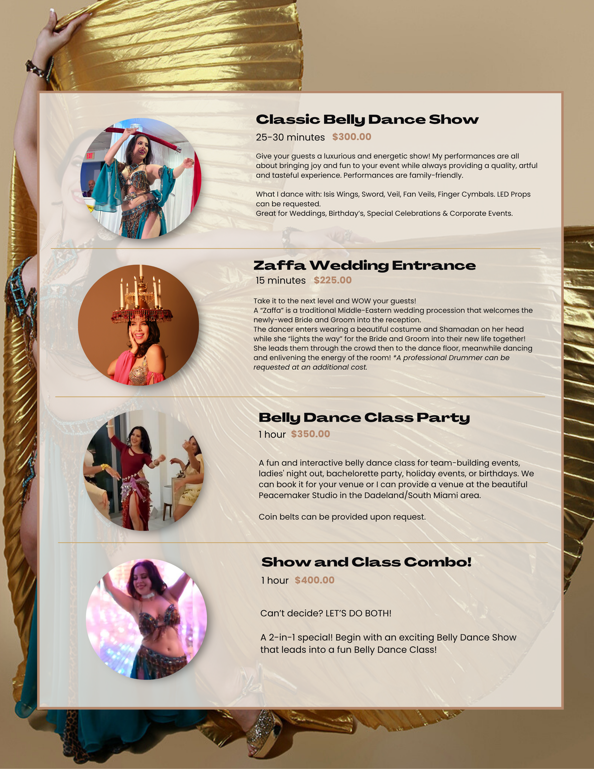 The client agrees to provide a safe, clean, and appropriate performance space. The area must be free of hazards, with a suitable floor surface for dance (no slippery, wet, uneven, or obstructed areas). Alexandra reserves the right to modify or decline performance conditions if safety is compromised.